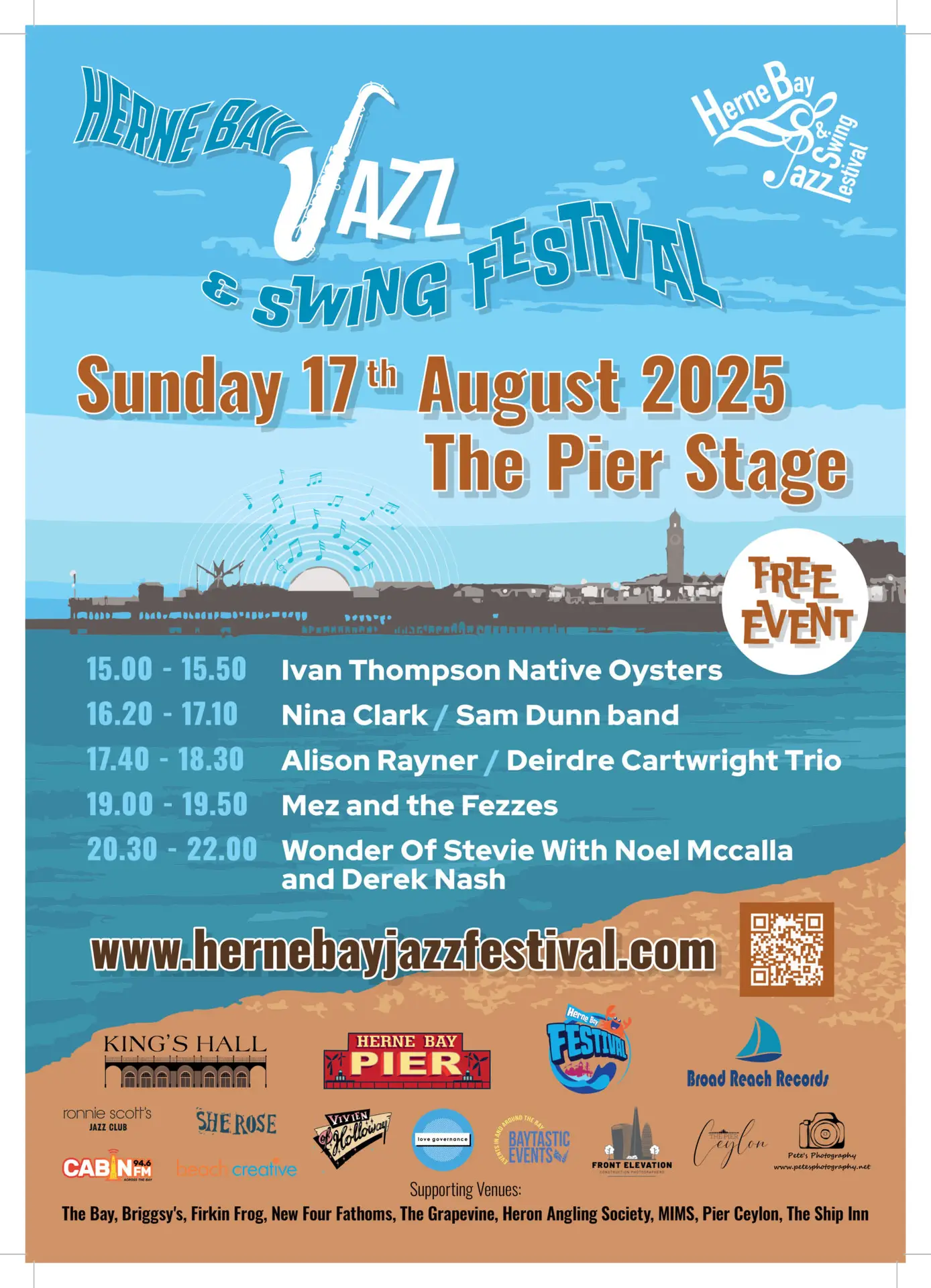We are delighted to welcome back the Herne Bay Jazz Festival for the 8th year running so save the dates- 15th to 17th August! Once again it will be a free family event on the Pier 17th August – everyone is welcome. Please give generously to our Jazz Fest collectors and raffle; these donations are vital to make the festival happen.